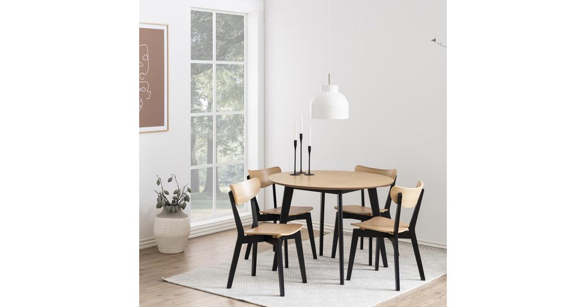 Söögilauakomplekt ROXBY ümar laud D105xH76cm, 4 tooli (AC85660), tamm/must - Lauad - Köök ja söögituba - Mööbel - Kodu - MT Shop
