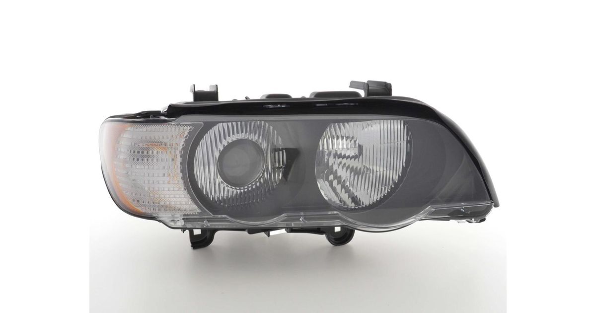 for BMW X5 E53 for year of construction: 1999 to 2003 with E mark (registration free) with electr. Headlight range adjustment including servomotor Light source: D2S / HB3 / 3757AK / W5W xenon headlights right / passenger side Accessories headlights Color: Black original look simple