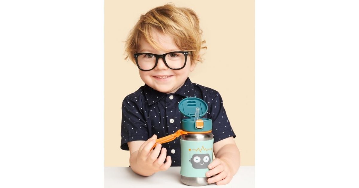 Featuring cool designs that will add sparkle to your little personalities, the stainless steel water bottle helps keep drinks cool on the go. The retractable lid keeps the flexible straw clean, and the non-slip silicone sleeve protects little hands from cold surfaces.