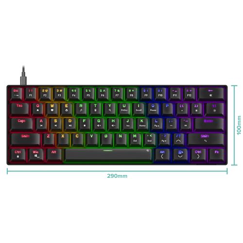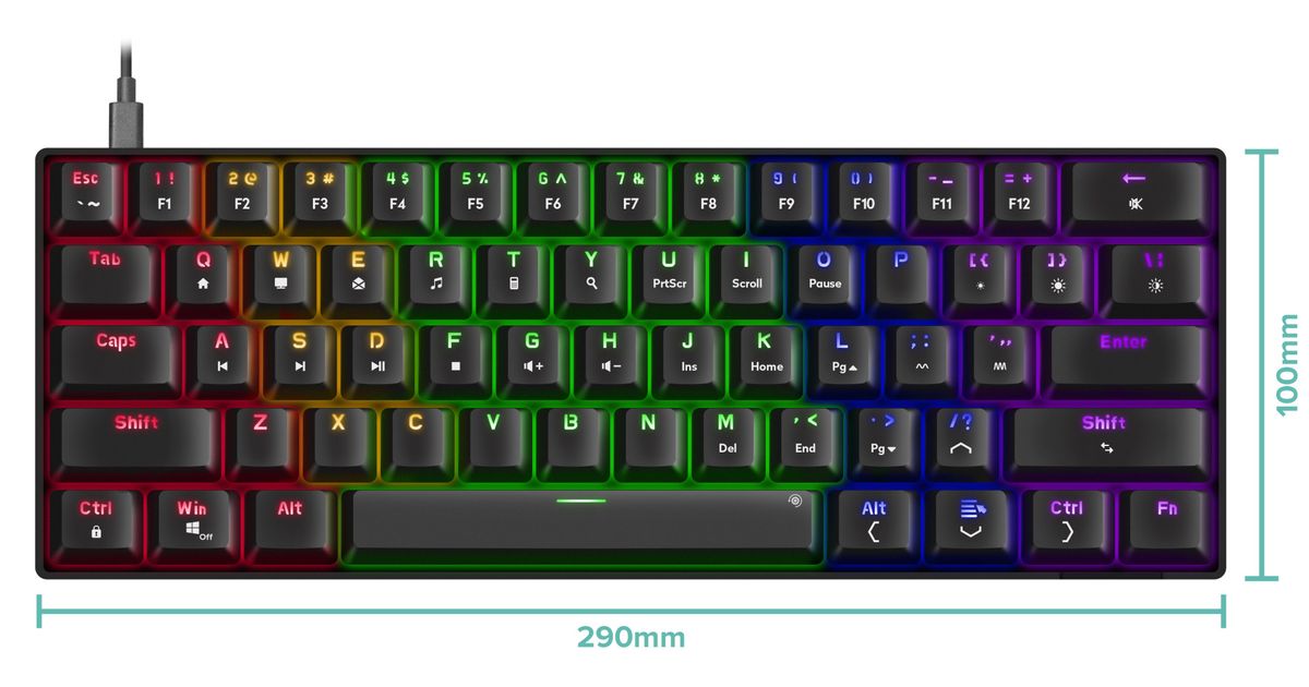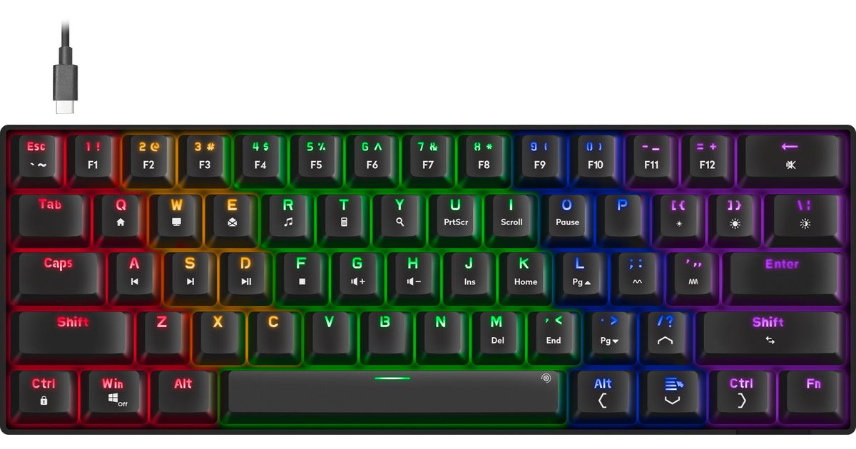 Kompaktne 60% suurus, eemaldatav 1,65 m USB-C - USB-A kaabel ja reguleeritav kõrgus pakuvad mugavust igas olukorras, samal ajal kui libisemisvastased jalused hoiavad klaviatuuri kindlalt paigal. Win-Key-Lock väldib kogemata katkestusi ning N-key rollover tagab, et iga vajutus loetakse täpselt. FN-klahvi abil pääsed ligi laiendatud juhtimisvõimalustele ja multimeediafunktsioonidele. See on klaviatuur, mis ühendab kompromissitu jõudluse ja stiilse disaini – ideaalne igale tõsisemale mängurile.