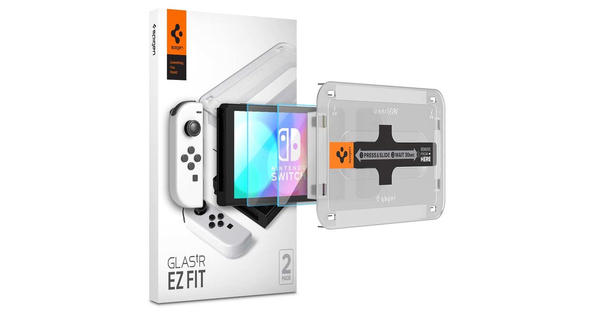 Spigen Glas.tR EZ Fit, Nintendo Switch, Kaitsekomplekt, Läbipaistev, Karp, 91,4 mm, 0,254 mm