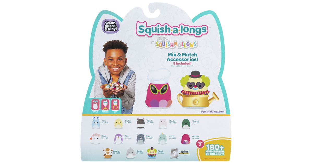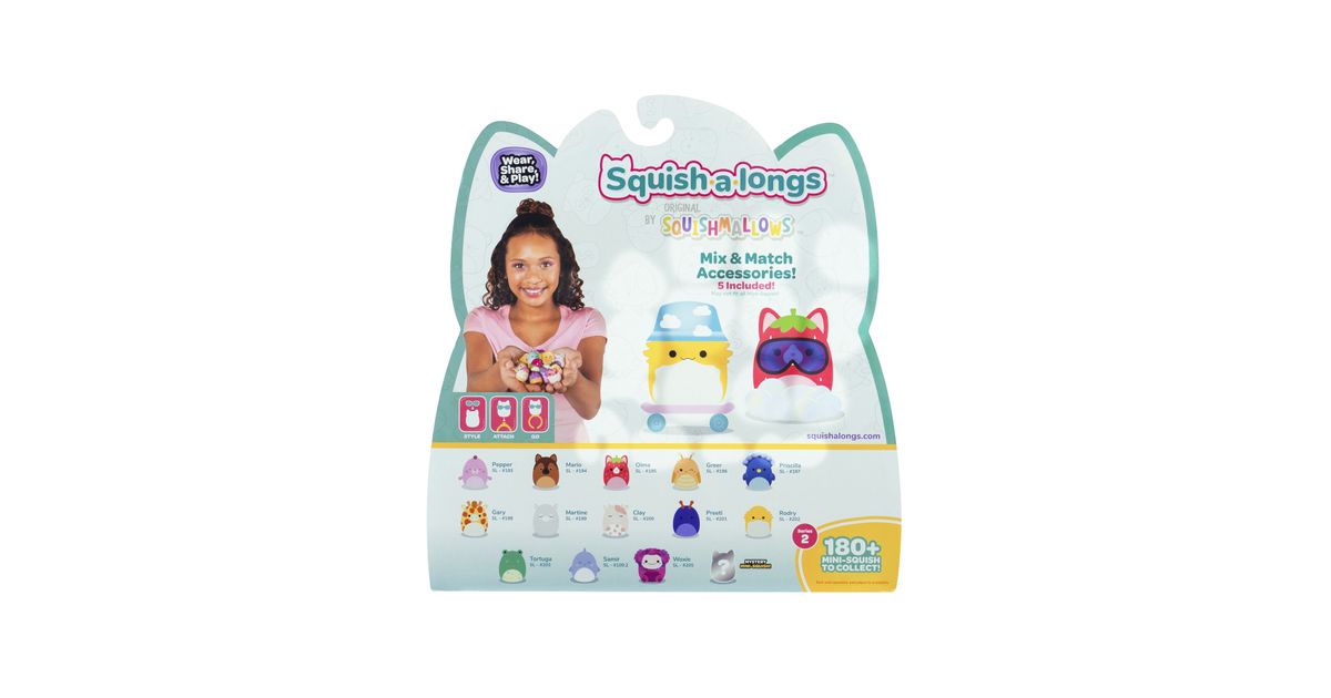 Valmistu uueks tasemeks Squish-a-longs´iga, mis on uusim täiendus Squishmallows perekonnas! Kutsuv ja kaasaskantav kollektsioneeritav ese, Squish-a-longs Mini-Squish, on valmistatud pigistatavast plastist ja on oma 2,5 cm suurusega täiuslik! Lõbu ei lõpe kunagi, sest koguda, vahetada, mängida, kanda ja välja panna saab üle 140 Mini-Squishi! Näita oma fänlust, kandes sõrmust ja riietades oma Mini-Squish´i lõbusate aksessuaaridega nagu südamekujulised prillid, kalamehemütsid, magamismaskid ja rohkemgi veel. Sa saad jälgida, et kõik kokku koguks, kasutades abistavat kollektsionääri juhendit. Naudi parimat Squish lõbu - alusta oma Mini-Squish kollektsiooni juba täna! Toote nimi on SQUISHMALLOWS minifiguuride komplekt Squish-a-longs, 14 tk, 2,5 cm, ast ja toote EAN on 191726755234.
