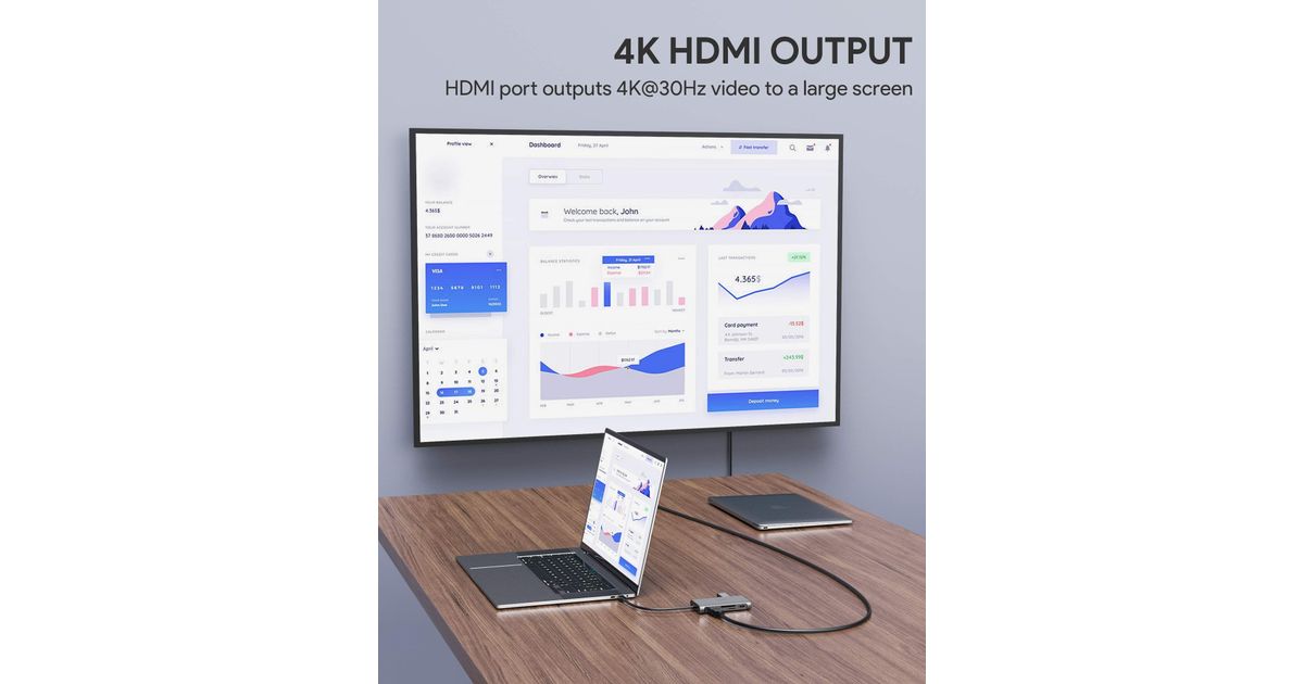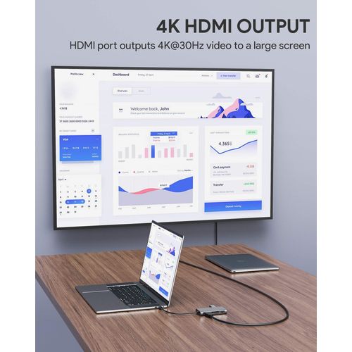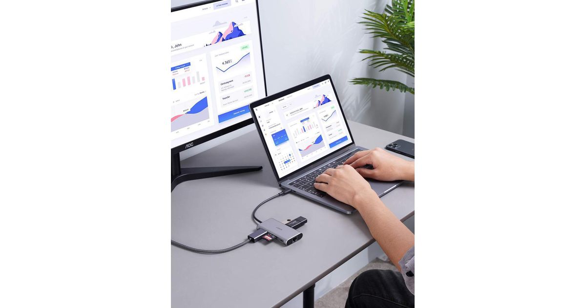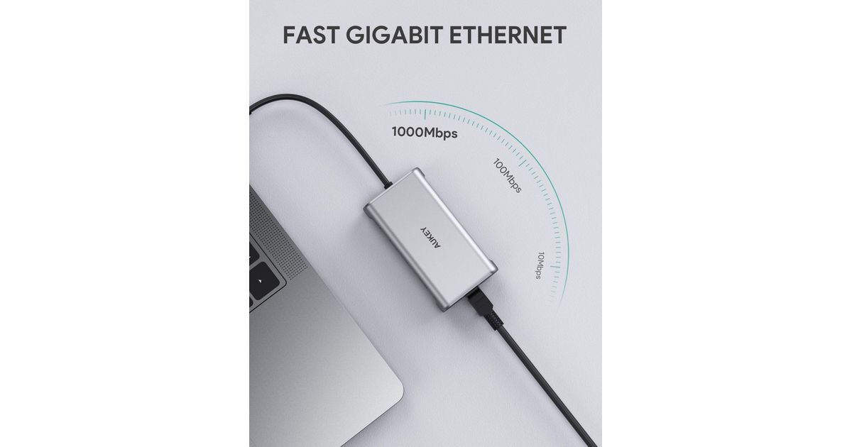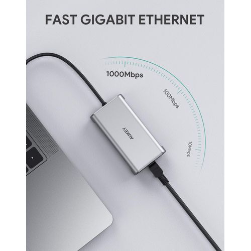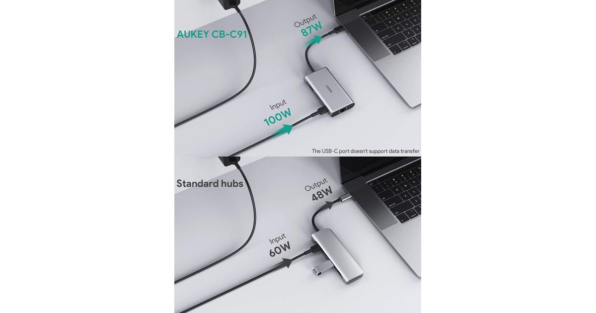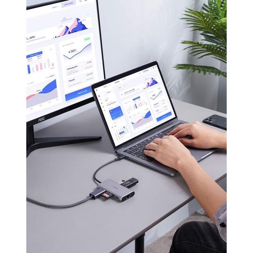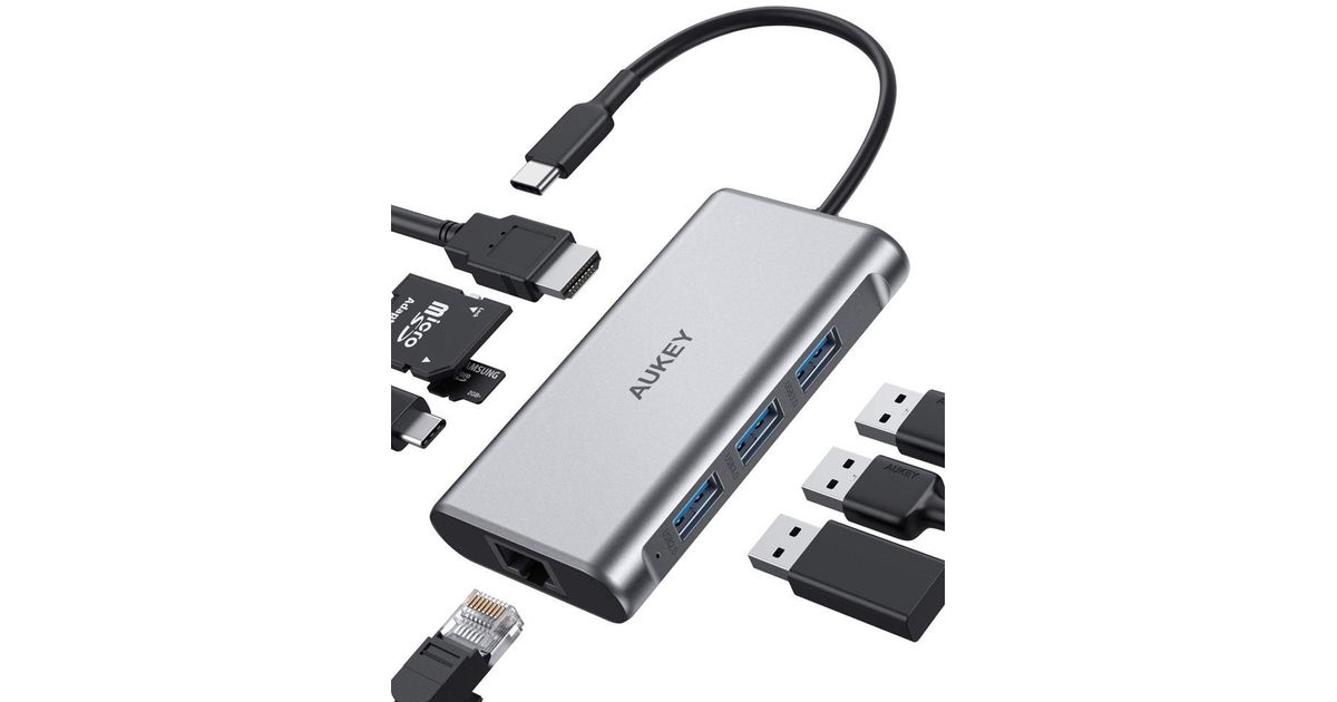 Stacja/replikator Aukey CB-C91 aluminiowy HUB USB-C | 8w1 | RJ45 Ethernet 10/100/1000Mbps | 3xUSB 3.1 | HDMI 4k@30Hz | SD i micro SD | USB-C Power Delivery 100W