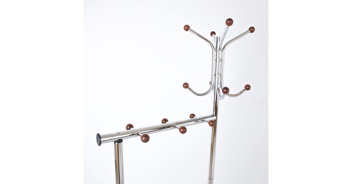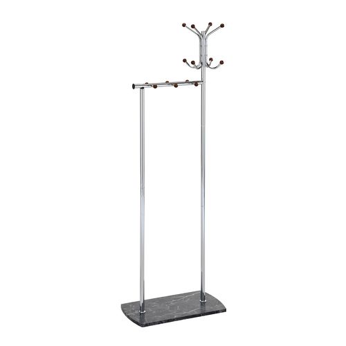 Stange FRAN kroom. Praktiline stange on ideaalne rõivaste riputamiseks. Toote terasraam on kaetud kroomviimistlusega. Toote puitosad on pruunis toonis. Stange alumises osas on laminaatplaat, millel on kaunis marmormuster. Stange mõõdud on 60x30xH177cm.