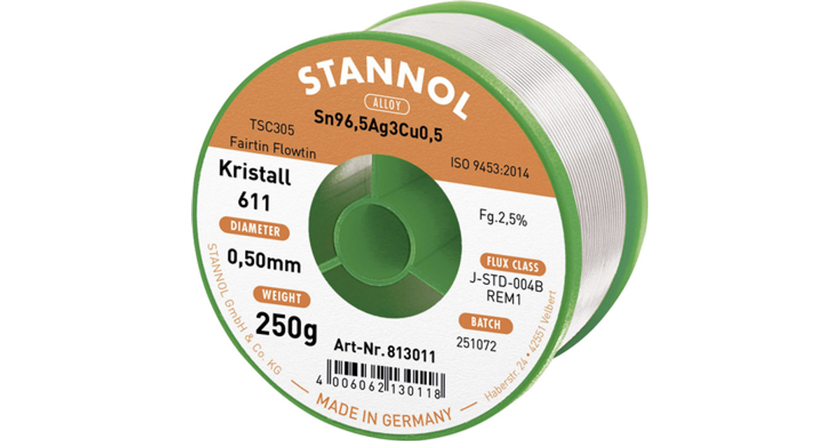 Stannol 813011, Jootetraat, Hall, 1 tk, 0,5 mm, 250 g
