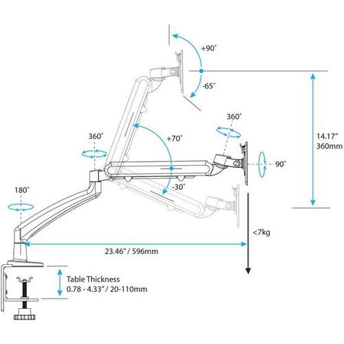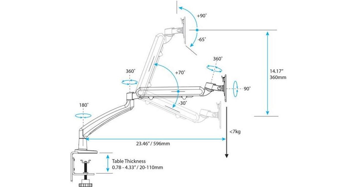 StarTech.com ARMSLIM, Klamber, 7 kg, 30,5 cm (12"), 86,4 cm (34"), 100 x 100 mm, Must