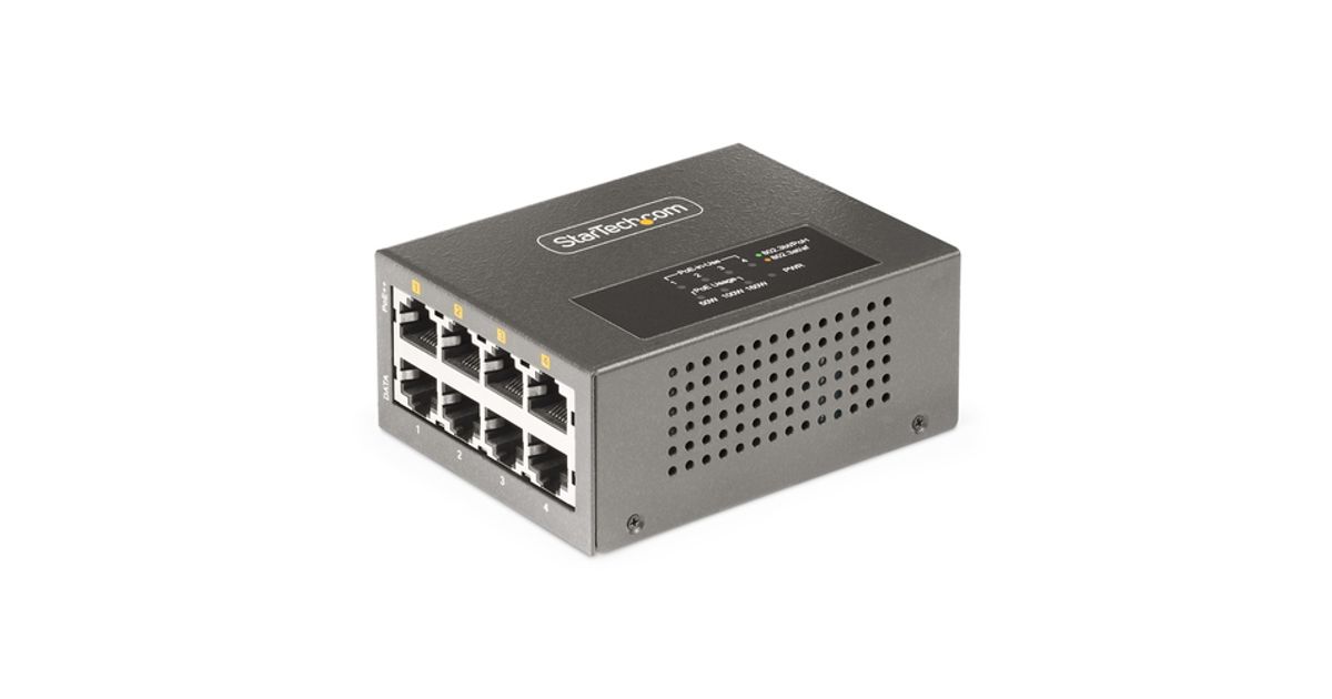 StarTech.com AS445C-POE-INJECTOR, 2.5 Gigabit Ethernet, 5 Gigabit Ethernet, Kiire Ethernet, Gigabit Ethernet, 10,100,1000,2500,5000 Mbit/s, IEEE 802.3ab, IEEE 802.3af, IEEE 802.3at, IEEE 802.3bt, IEEE 802.3i, IEEE 802.3u, Cat5e, Cat6, Cat6a, Microsemi - PD69208T4, Microsemi - PD69200R, Hall