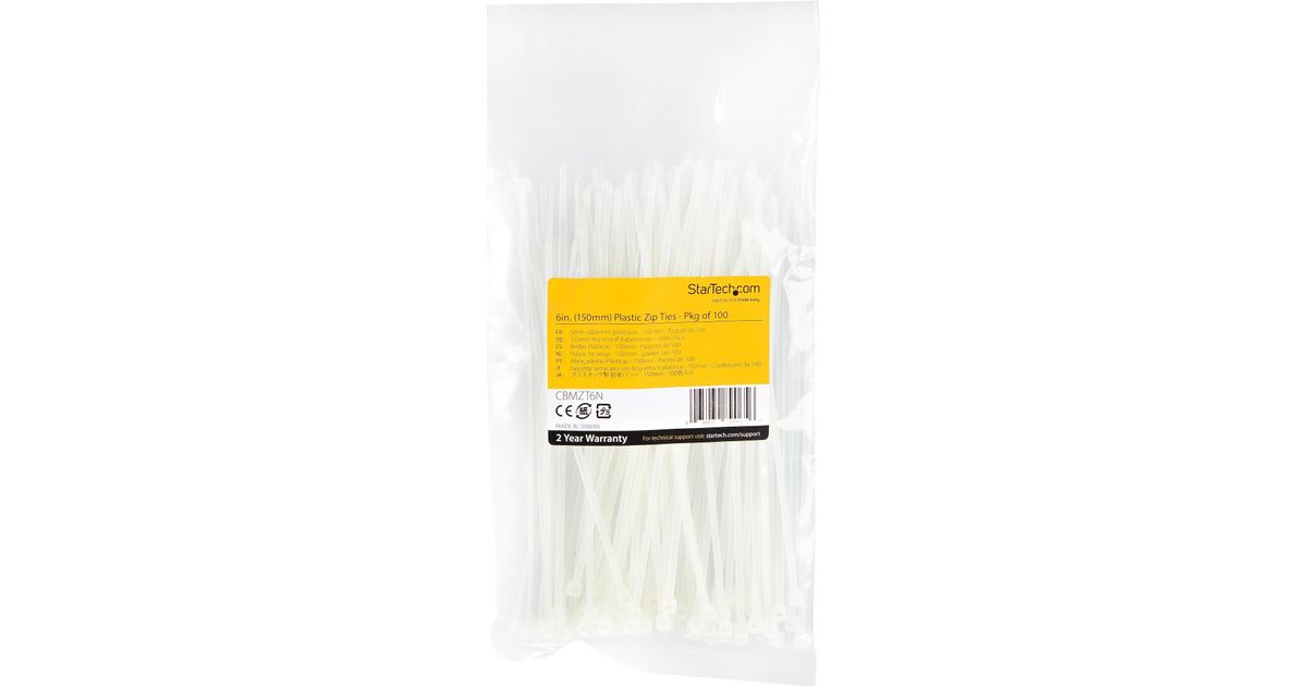 StarTech.com CBMZT6N juhtmeköidis Vabastatav juhtmeside Nailon, Plast Valge 100 tk
