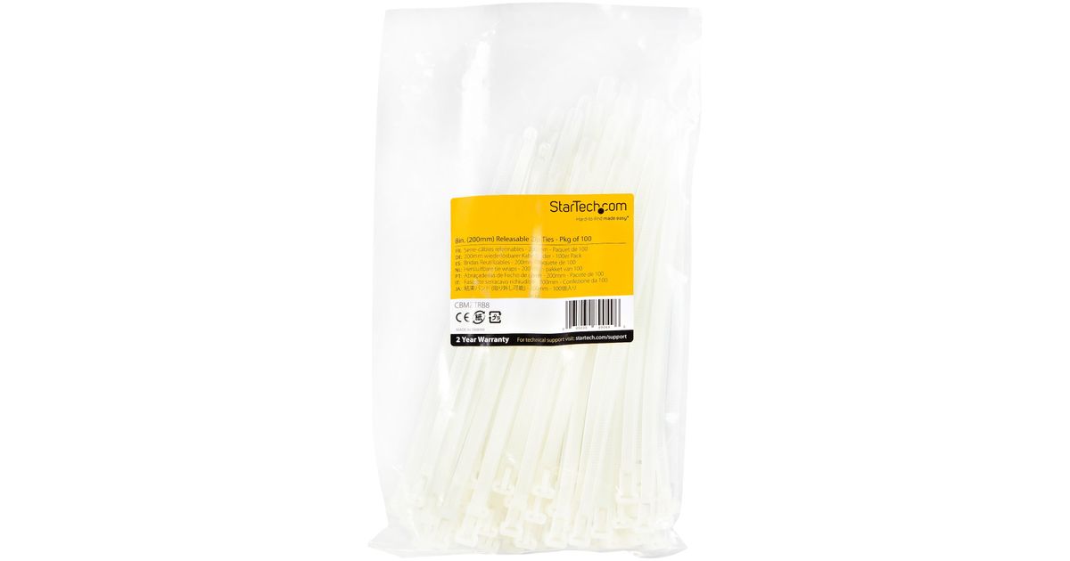 StarTech.com CBMZTRB8, Vabastatav juhtmeside, Nailon, Plast, Valge, 5 cm, V2, -40 - 85 °C