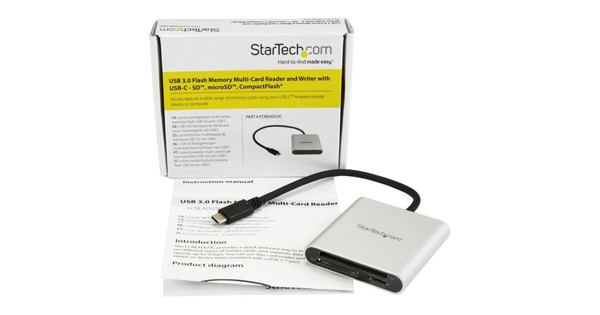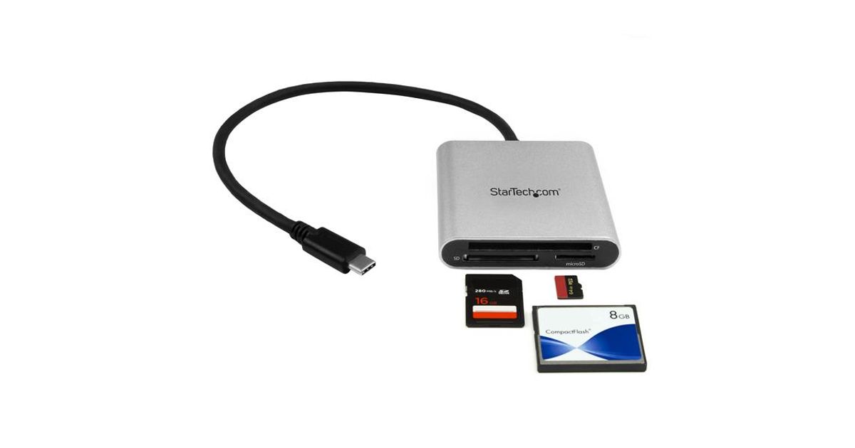 StarTech.com FCREADU3C, CF, MMC, MicroSD (TransFlash), MicroSDHC, MicroSDXC, SD, SDHC, SDXC, Must, Hõbe, 5000 Mbit/s, Alumiinium, Plast, CE, FCC, RoHS, USB 3.2 Gen 1 (3.1 Gen 1) Type-C