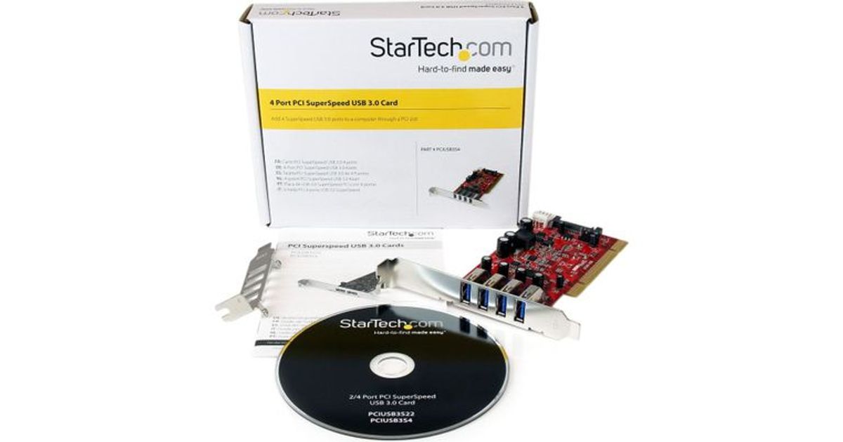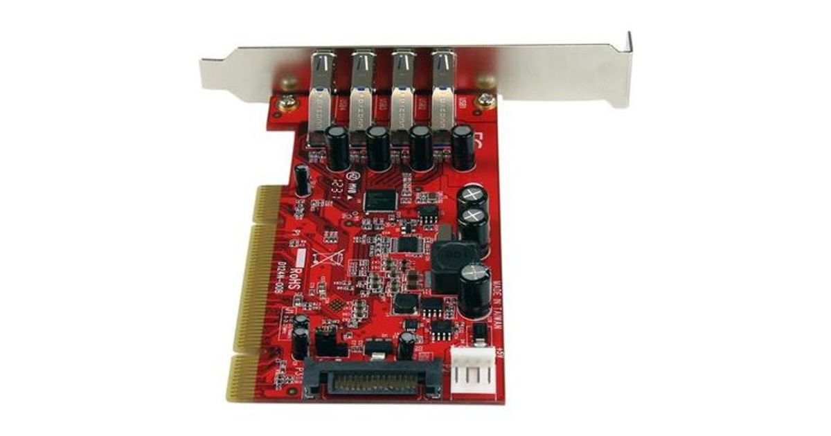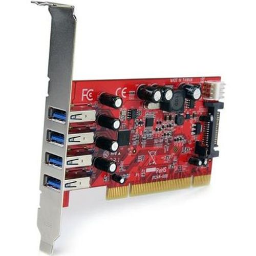 StarTech.com PCIUSB3S4, PCI, USB 3.2 Gen 1 (3.1 Gen 1), Punane, CE, FCC, TAA, REACH, Renesas/NEC - µPD720202, 5 Gbit/s
