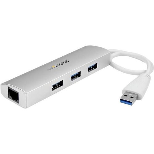 StarTech.com ST3300G3UA, Juhtmega ühendatud, USB, Ethernet, 5000 Mbit/s, Hõbe, Valge