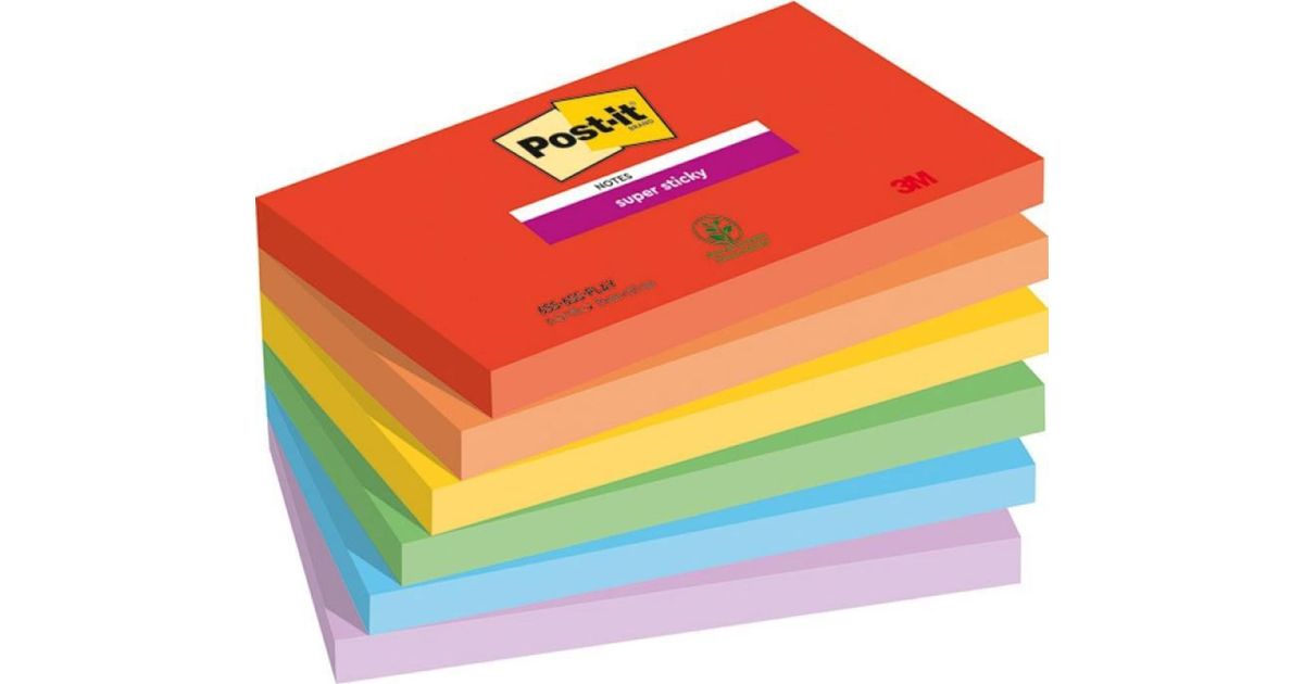 Sticky notes Post-it® Super Sticky, PLAYFUL, 76x127mm, 6x90 cards.