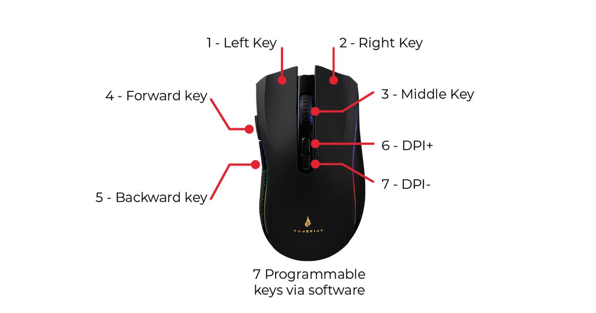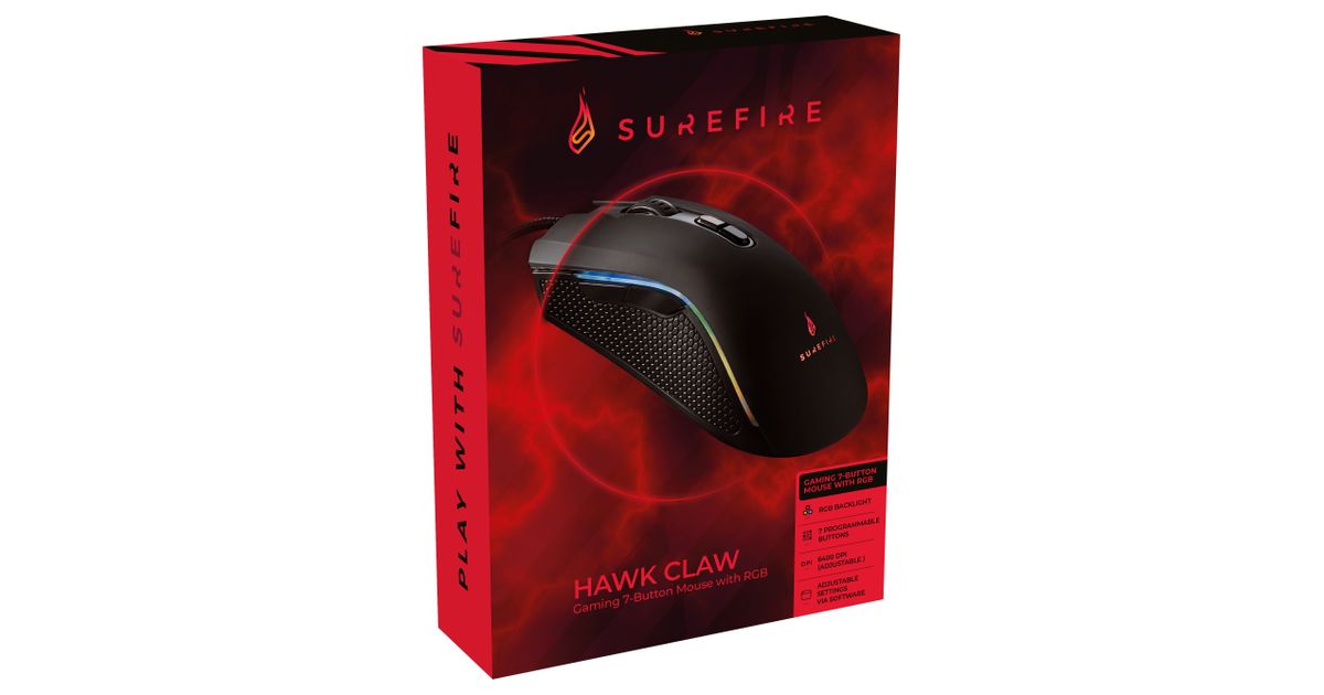 SureFire Hawk Claw, Parempoolne, Optiline, USB tüüp A, 6400 DPI, 6000 fps, Must