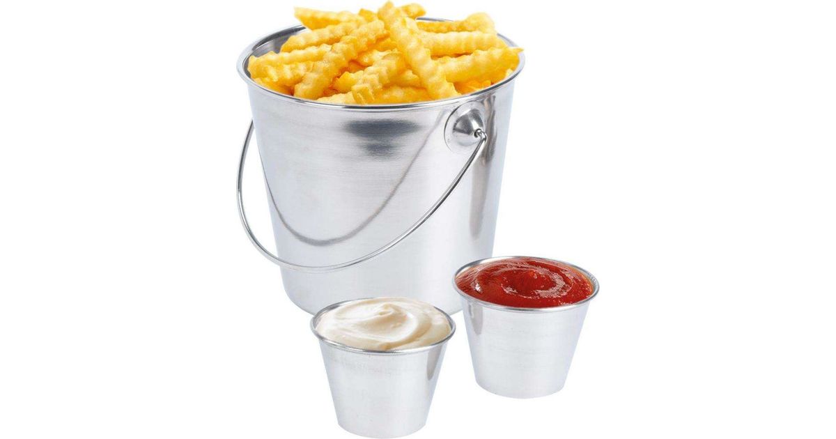 Suurepärane majatarkvara ämber friikartulite jaoks suupistete alustamiseks + 2x kauss Dipa kastmete jaoks