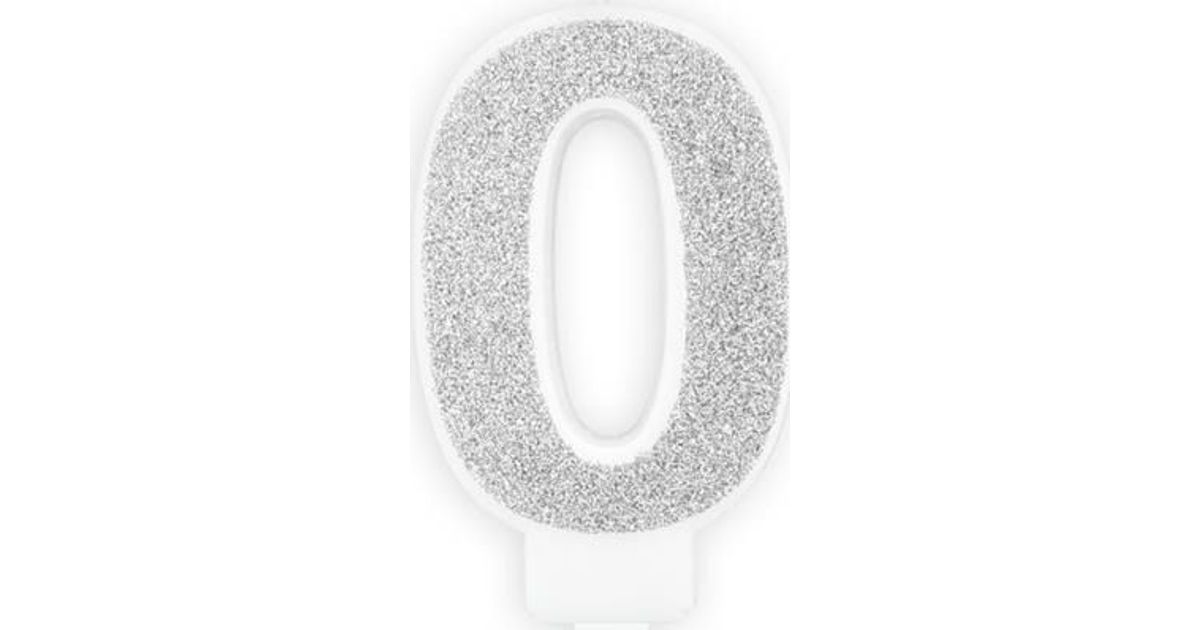 Świeczka urodzinowa, cyferka 0, srebrna brokatowa, 7 cm. uniwersalny