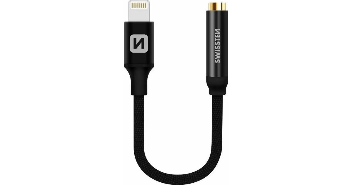 Swissten Adapter tekstylny Lightning / Jack 0,15m Czarny