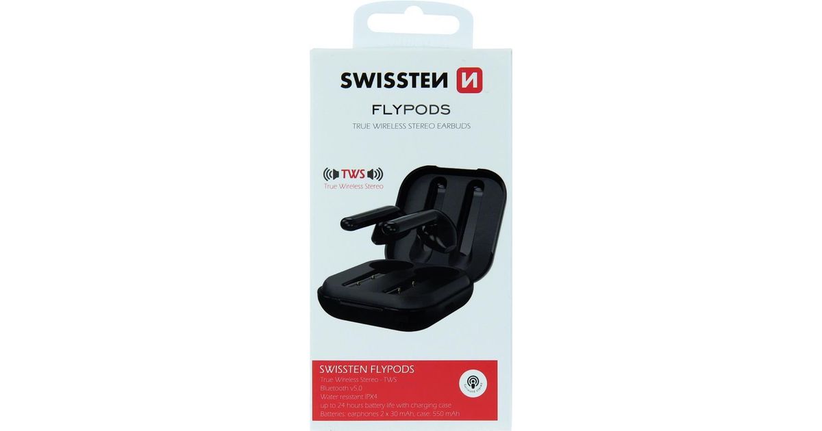 Swissten Bluetooth TWS Earphones Flypods, BT V5.0, black, Blister (53100200)
