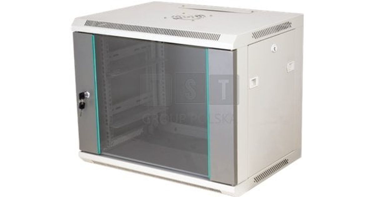 Szafa Q-Lantec Szafa wisząca 19" 9U 600x450, niedzielona, drzwi szklane jednoskrzydłowe, tył osłona pełna, osłony boczne zamykane na klucz, kolor szary FLAT PACK, (SW-9U-600-450-N-DSJ-OP-RP-F-S-1)