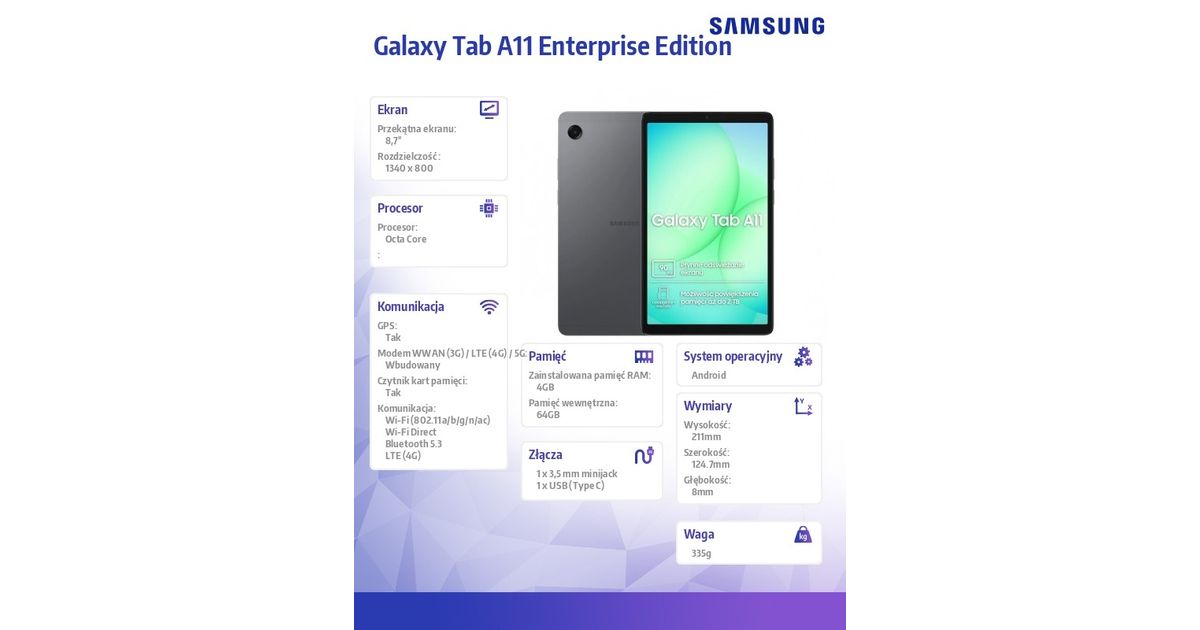 Tablet Galaxy Tab A11 X130 S 8.7 inches 4/64GB Wi-Fi Grey Enterprise Edition