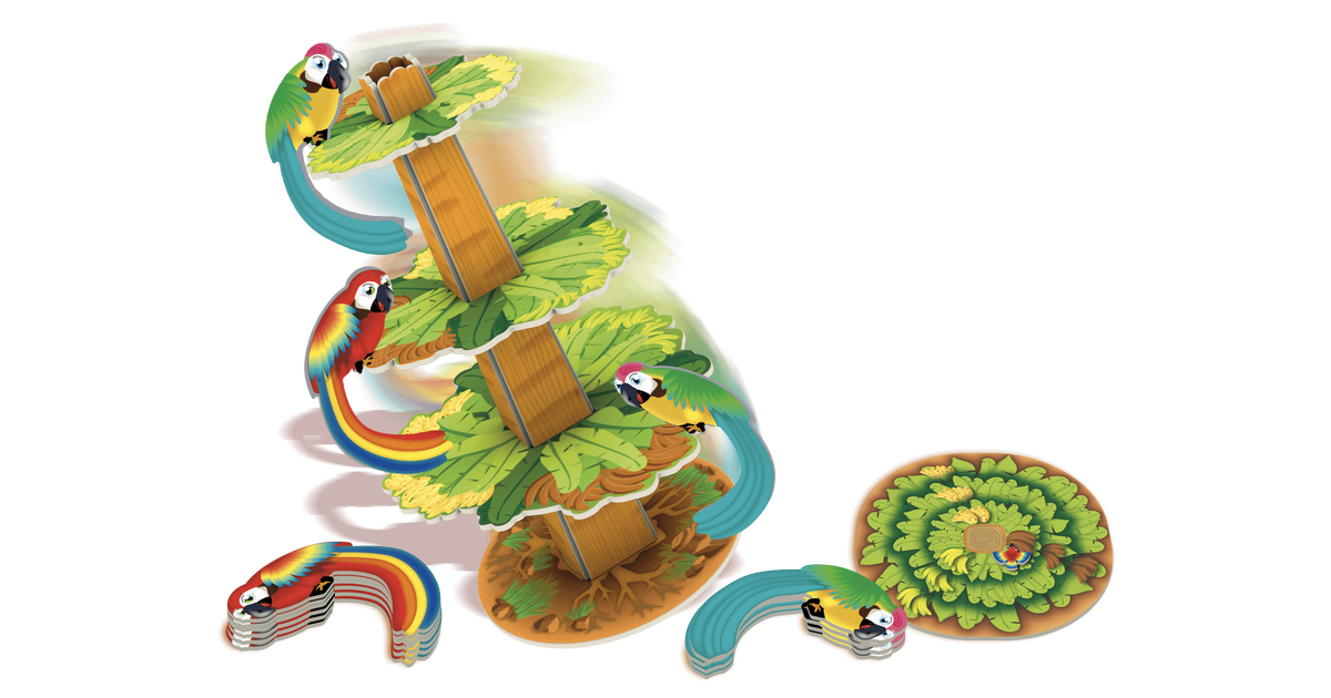Papagoid tahavad magusaid ja maitsvaid banaane süüa. Lihtne öelda, sest puu ei seisa kuidagi paigal. Iga kord, kui papagoi oksale istub, hakkab puu siia-sinna kõikuma. Kas sinu papagoid jaksavad küllalt kõvasti kinni hoida, et mitte alla kukkuda? Mängija, kes paneb esimesena oma viimase papagoi puu otsa, on võitja!