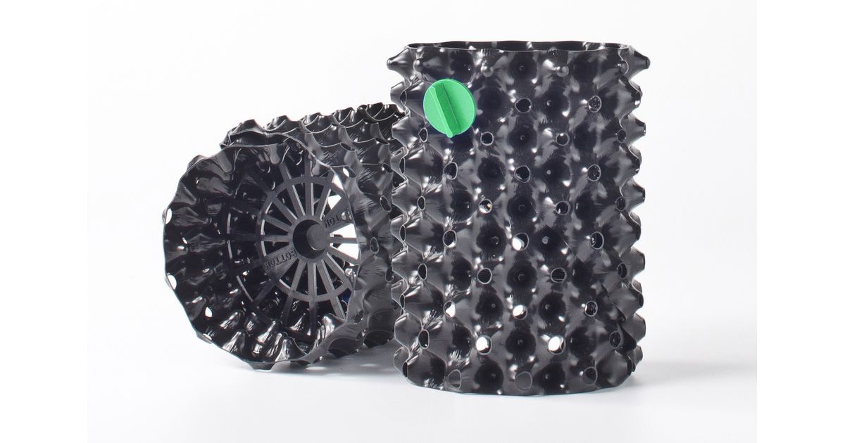See on taaskasutatud ja korduvkasutatav plastikkonteiner, mis tänu oma disainile arendab aktiivselt taimede juurestiku kvaliteeti. Mahutid on korduvkasutatavad ja kestavad palju aastaid.