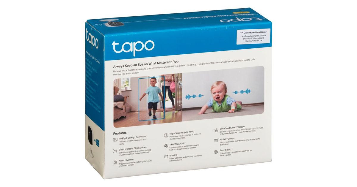 Use the Tapo C100 WLAN surveillance camera to securely monitor your home. This camera offers you a variety of features for safe and easy monitoring. The Tapo C100 provides functions like baby cry detection, person detection, and customisable privacy zones. These ensure comprehensive monitoring and protect your privacy.