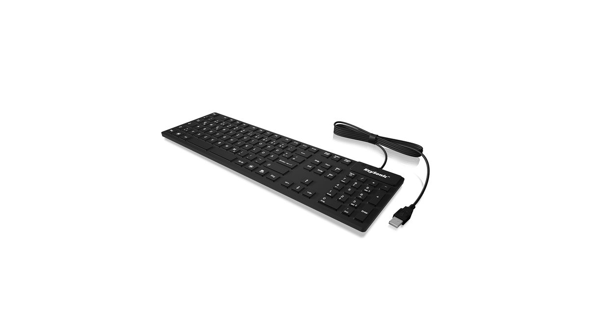 Ergonomisch gestaltete Silikonummantelte-Tastatur mit 105 Tasten. Unsere Keysonic Tastatur verfügt über ein ausgezeichnetes, taktiles Druckgefühl und ist wasserdicht nach IP68 und kann somit sogar in Flüssigkeiten eingetaucht werden.