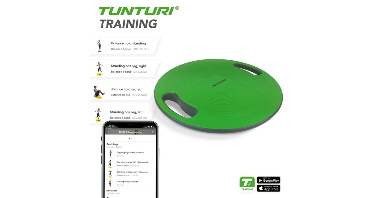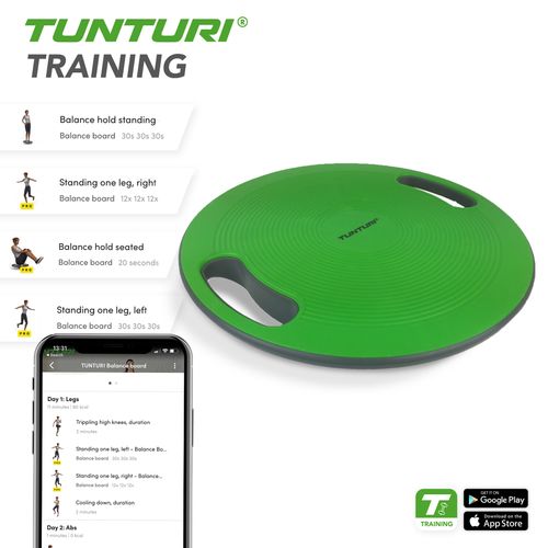 Tunturi Balance Board on ideaalne vahend hea tasakaalutreeningu jaoks. Aitab eriti hästi peale vigastusi pahkluudele, samuti aitab ka koordineerimist. Kare pind loob hea haardumise. Tasakaalupunkt on pehme ja seetõttu põrandale kahjustusi ei tekita.