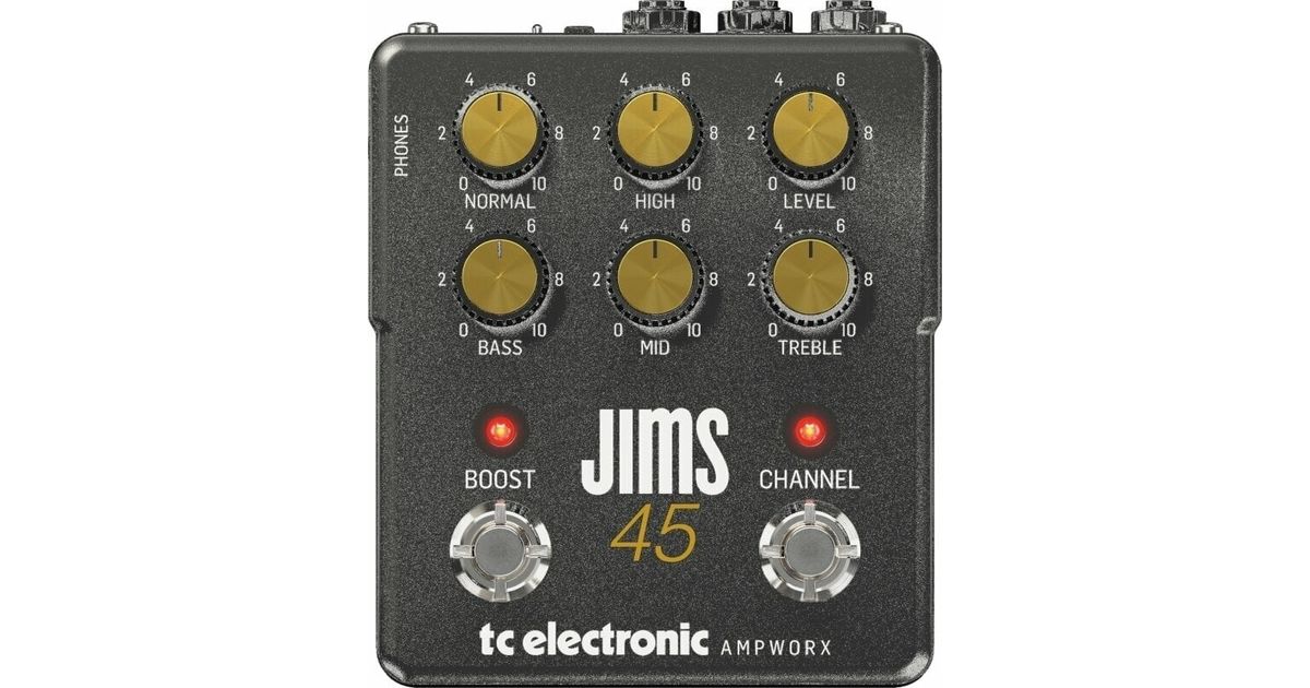 Dual-Channel Guitar Preamp Faithfully Recreates the Sound of a 1965 JTM45 in a Pedal with Independent Channel Controls, Pre/Post Boost, Optional Cab Sim and Dedicated Outputs for DI and Headphones.At the heart of JIMS 45, AMPWORX modeling technology works its magic, carefully recreating the classic guitar tone that’s the sum of each and every component from the circuit of the original.The control layout is true to the original to not only give you authentic tone, but also a familiar look that makes you feel right at home. From this classic starting point, you can go classic, modern or just downright nuts. It’s all up to you how you want to tweak JIMS 45, but rest assured that no matter what, you’ll be able to sculpt jaw-dropping guitar tones that are perfect for bending notes as well as minds.With today’s convolution-based IR technology it is possible to sample the past with great accuracy and authenticity. After intensive testing was decided to integrate the official impulse response of the beloved 4x12 G12M Celestion Creamback speaker cab.