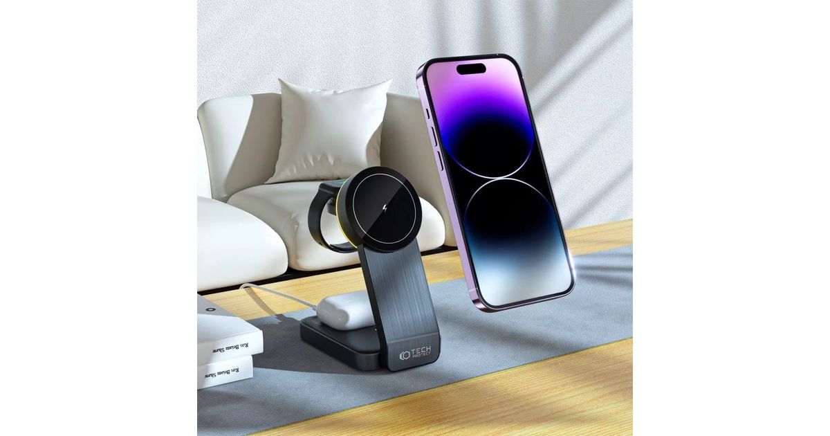 Tech-Protect laadija MagSafe Tech-Protect Qi15W-A28 3in1 magnetiline juhtmevaba laadija must