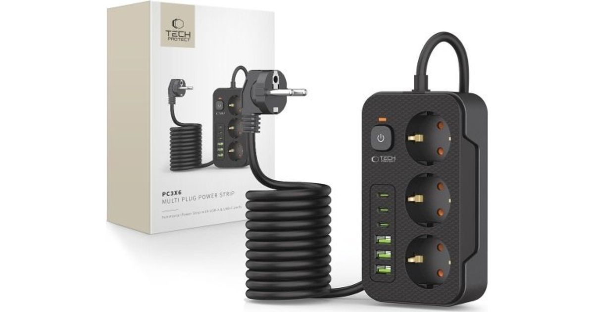 Tech-Protect pistikupesa TECH-PROTECT PC3X6 TOITEPISK, 3 USB & 3 TÜÜP-C & 3 SOCKET 200CM MUST