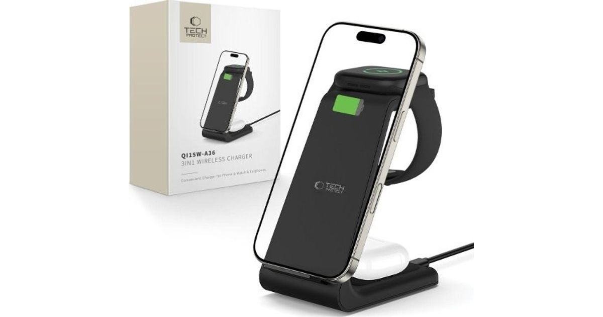 TECH-PROTECT QI15W-A36 3IN1 juhtmevaba laadija Apple Blackile