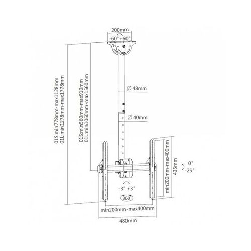 Techly 309333, 50 kg, 81,3 cm (32"), 139,7 cm (55"), 200 x 200 mm, 400 x 400 mm