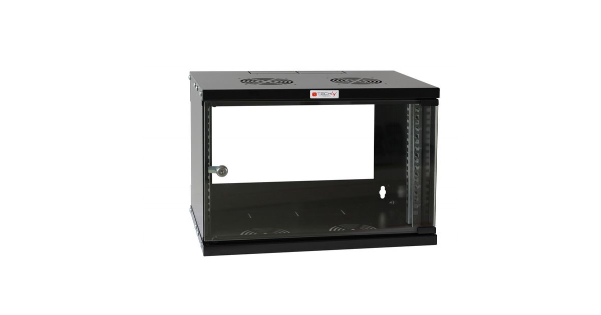 Techly I-CASE EL-1006B45, Seinale monteeritav riiul, 6U, 50 kg, Lukk, 14,2 kg, Must