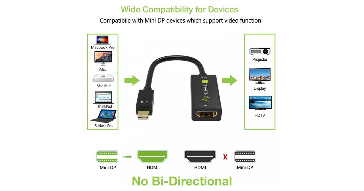 Techly IADAP MDP-HDMIF8K, Mini DisplayPort, HDMI, Meessoost, Naissoost, Sirge, Sirge
