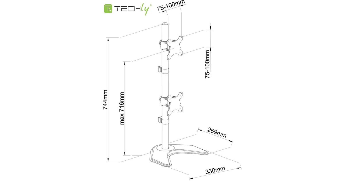 Techly ICA-LCD 2520V, Eraldiseisev, 20 kg, 33 cm (13"), 68,6 cm (27"), 100 x 100 mm, Must