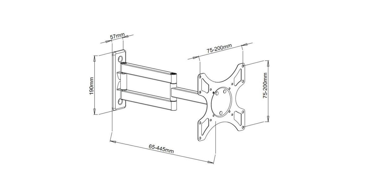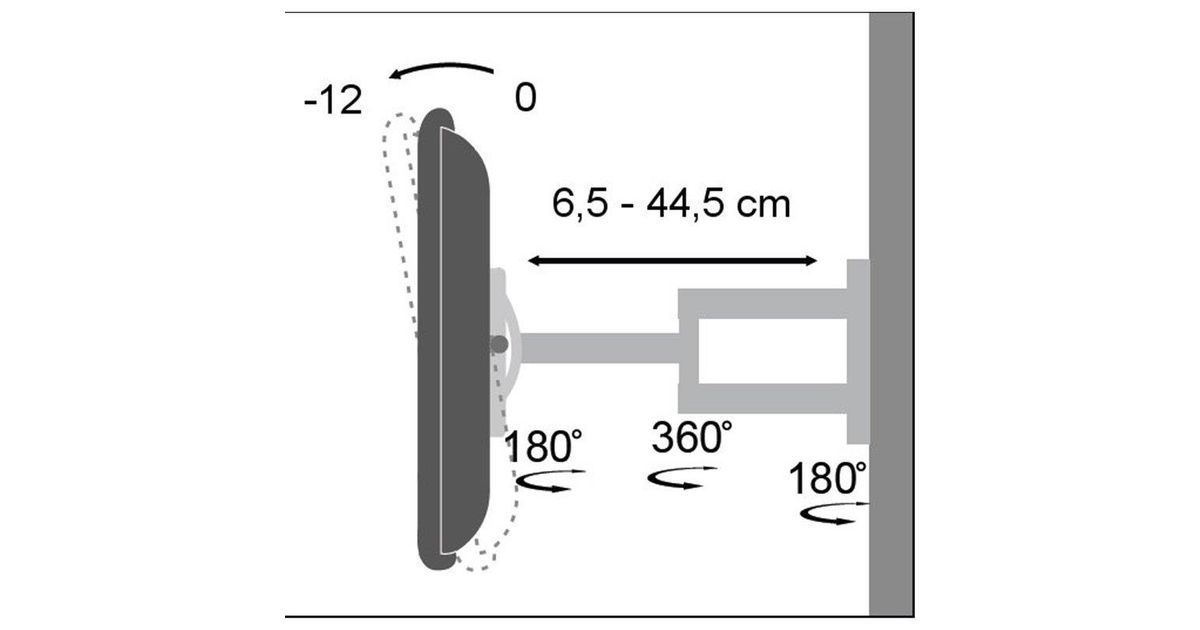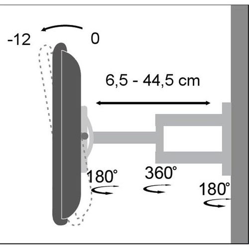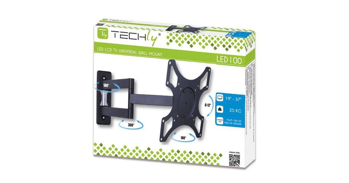 Techly ICA-LCD 2903, 94 cm (37"), 75 x 75 mm, 200 x 200 mm, 0 - 12°, 0 - 180°, Must