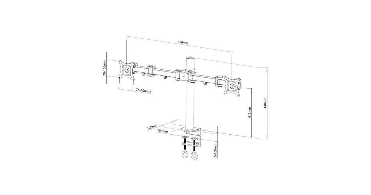 Techly ICA-LCD 482-D, 20 kg, 33 cm (13"), 78,7 cm (31"), 100 x 100 mm, Kõrguse reguleerimine, Must