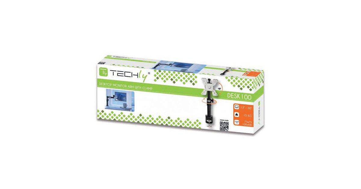 Techly ICA-LCD 500BK, 15 kg, 33 cm (13"), 76,2 cm (30"), 100 x 100 mm, Kõrguse reguleerimine, Must
