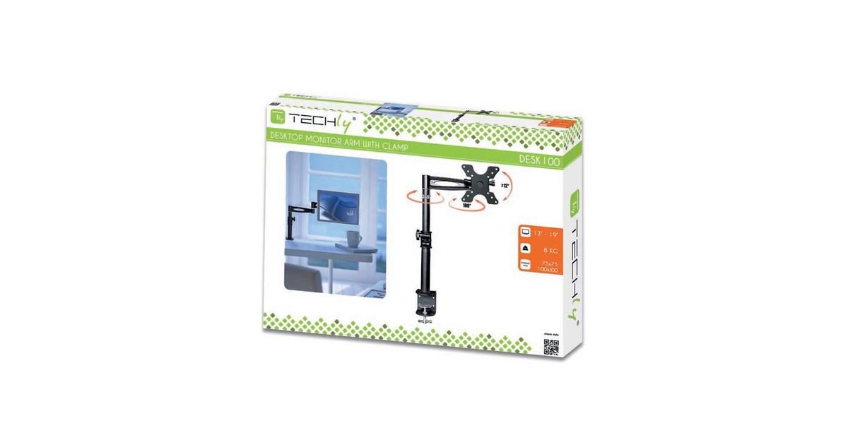 Techly ICA-LCD 501BK, 8 kg, 33 cm (13"), 48,3 cm (19"), 100 x 100 mm, Kõrguse reguleerimine, Must