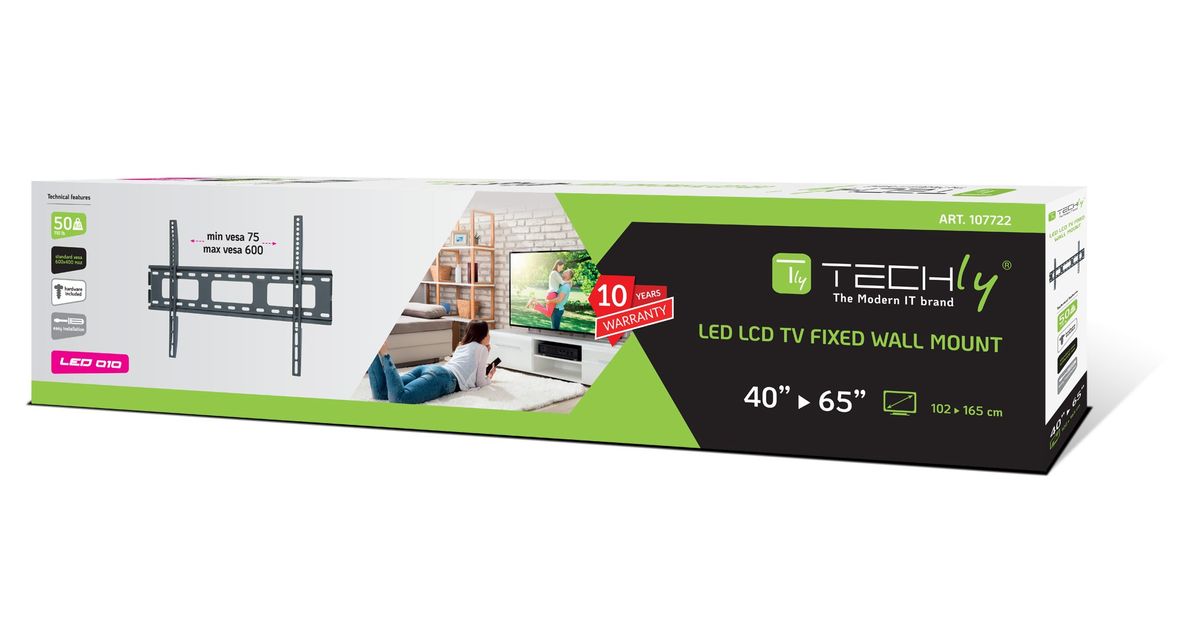 Techly ICA-PLB 132L2, 101,6 cm (40"), 165,1 cm (65"), 100 x 100 mm, 600 x 400 mm, Metall, Must