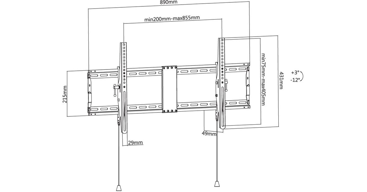 Techly ICA-PLB-590, 109,2 cm (43"), 2,29 m (90"), 200 x 200 mm, 800 x 400 mm, -12 - 3°, Must