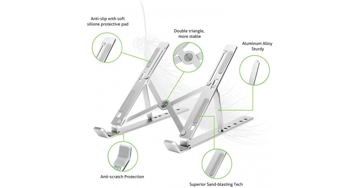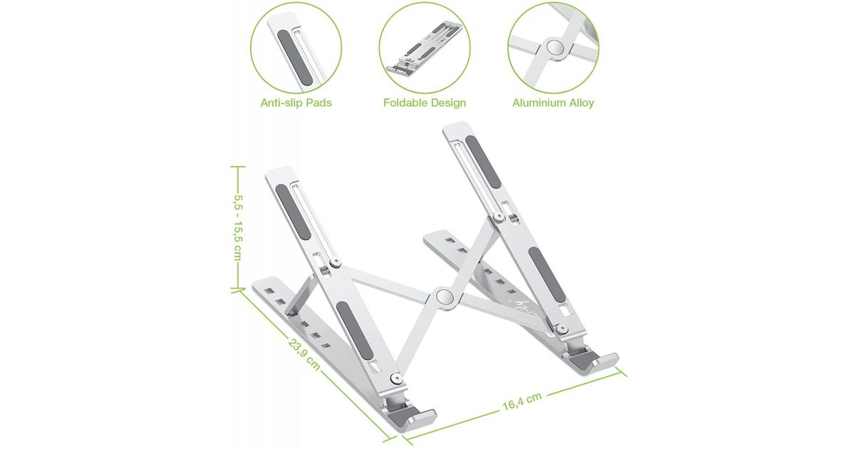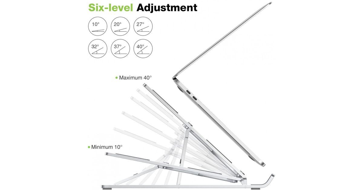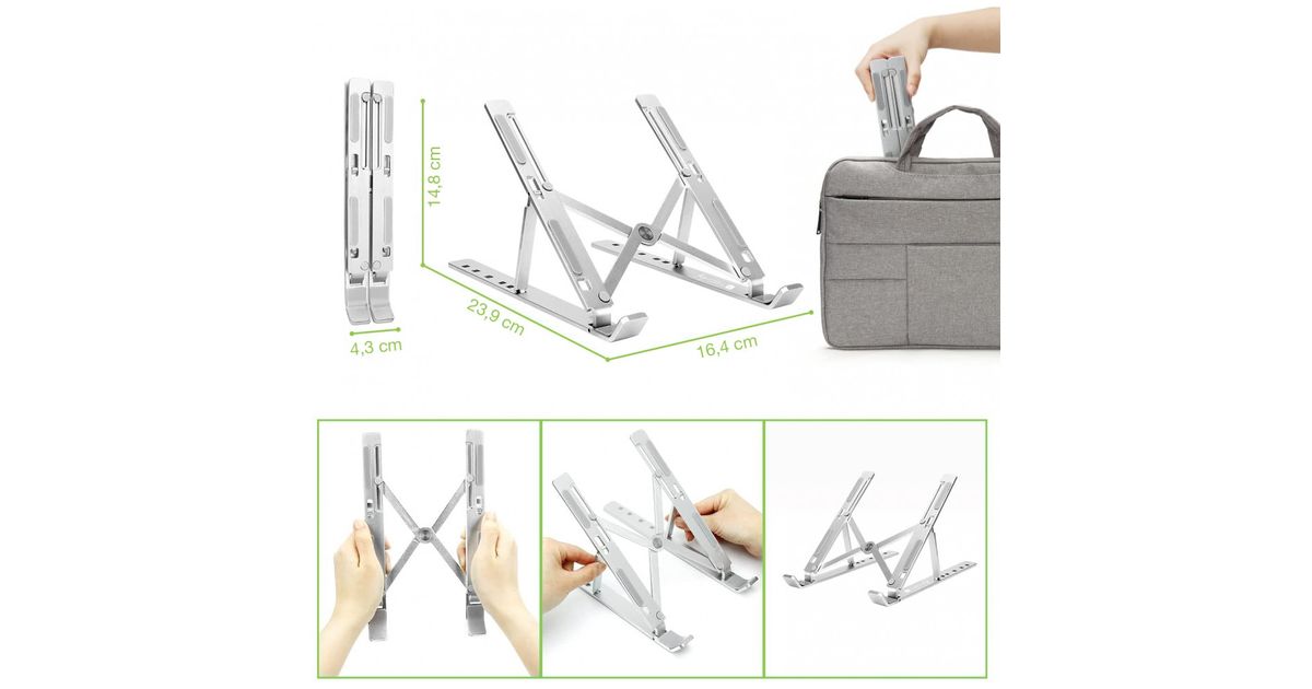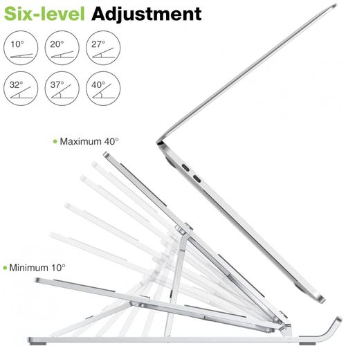 Techly ICA-TBL 134TY, Sülearvuti alus, Hõbe, Alumiinium, 25,4 cm (10"), 40,6 cm (16"), 55 - 155 mm