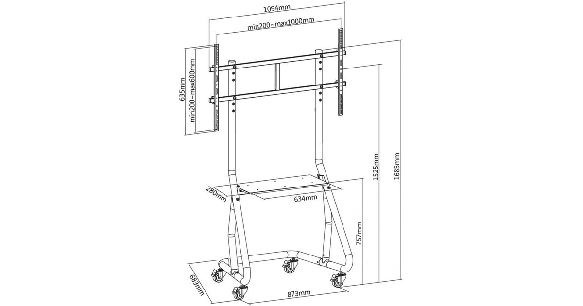 Techly ICA-TR38, 100 kg, 152,4 cm (60"), 2,67 m (105"), 1000 x 600 mm