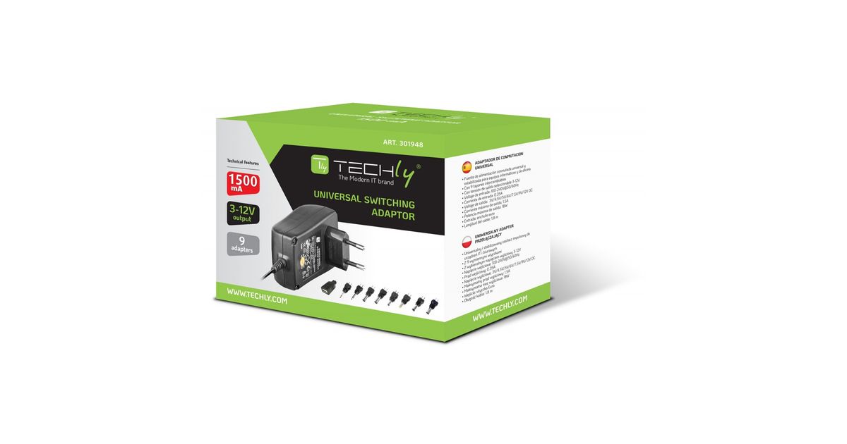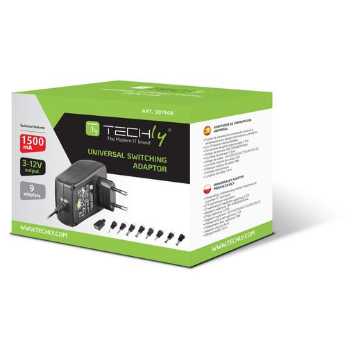 Techly IPW-NTS1500G, Universaalne, Hoonesisene, 100 - 240 V, 50/60 Hz, 18 W, 3, 4.5, 6, 7.9, 12 V