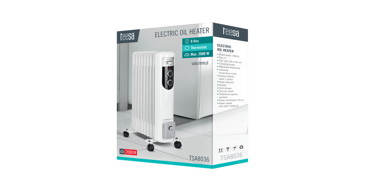 Teesa TSA8036 Electric Oil Heater White 2000 W