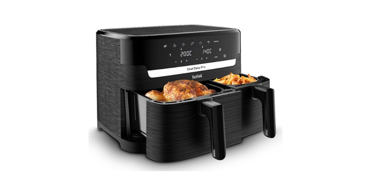 Discover Tefal's 8.3-liter dual chamber air fryer that allows you to prepare complete, home-cooked meals for the whole family in one go and in less than 15 minutes! Dual Easy Fry from Tefal has two independent drawers that can cook two different dishes simultaneously to perfection - from deliciously crispy fries to tasty meat, fish, vegetables and even desserts.