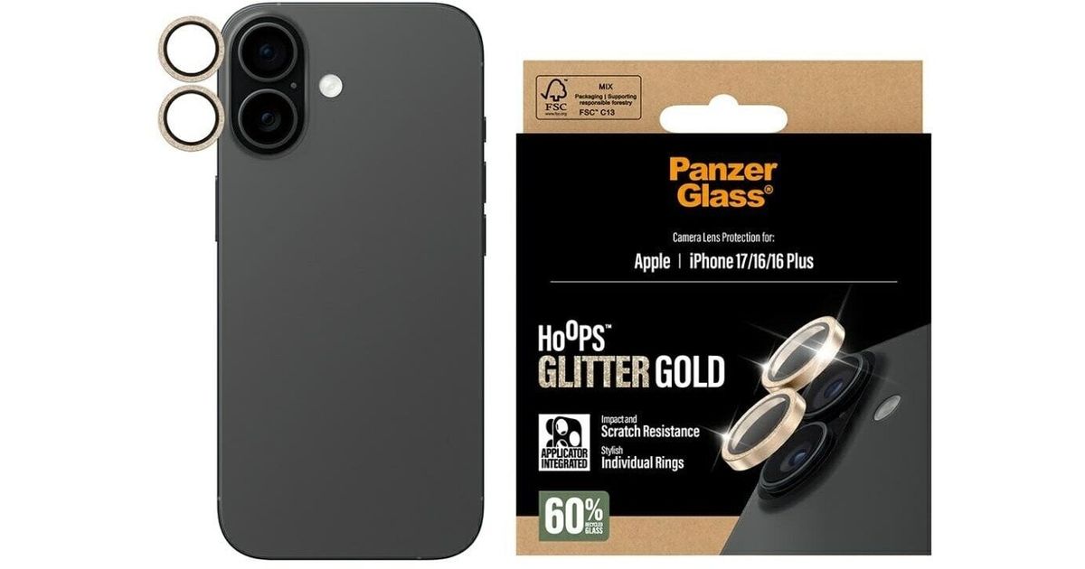 Tempered glass lens protector PanzerGlass Hoops Glitter for iPhone 17 / 16 / 16 Plus gold