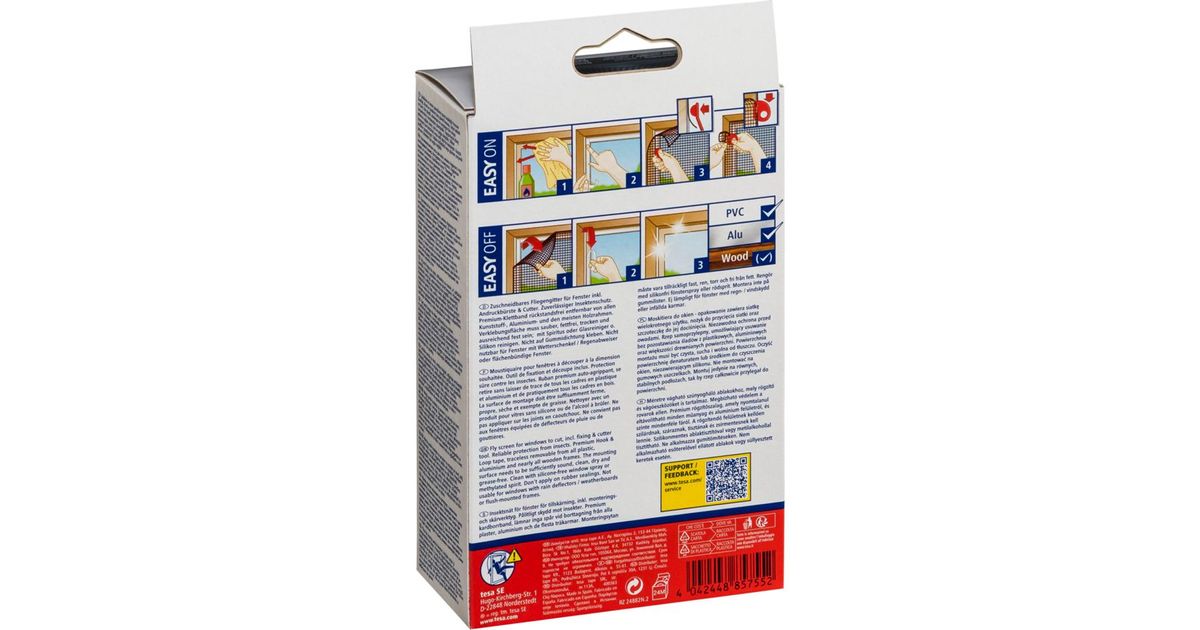The tesa Insect Stop insect screen for windows from the Comfort series impresses with its high tesa quality and utilises advanced adhesive technology. It allows fresh air into the house while keeping insects out. The screen is attached to the window frame using a self-adhesive Velcro strip. The fine-meshed structure provides effective protection against insects. The easy-off system allows the mosquito screen to be removed without leaving any residue. The insect screen is also washable at 30°C and reusable.